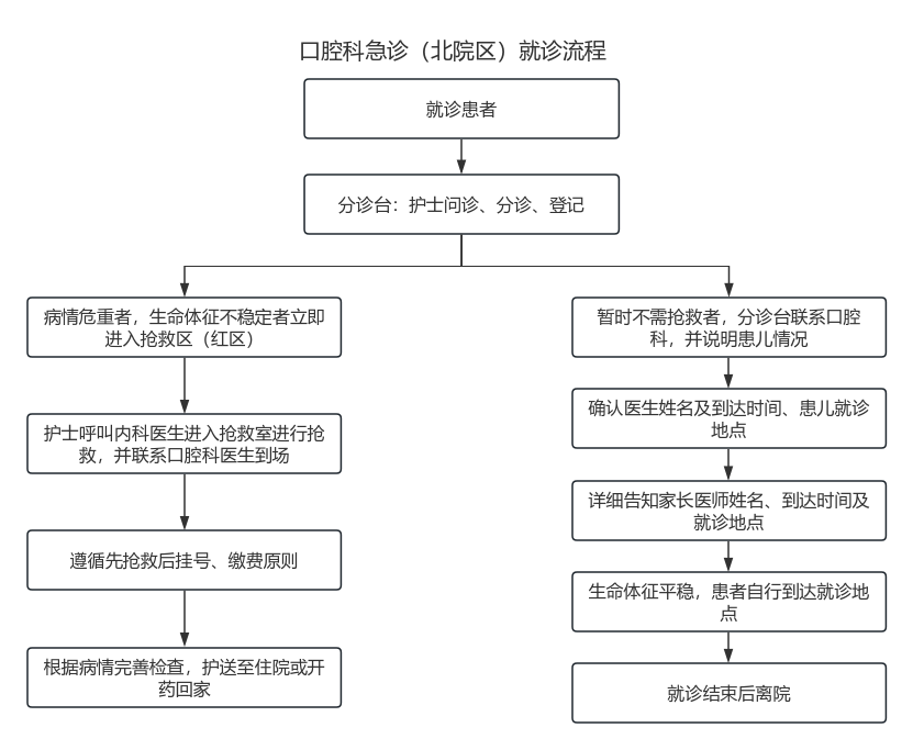口腔科急诊(北院区)就诊流程图